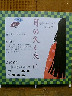 日曜日が千秋楽で、月曜日が撤収作業で、10月公演『月の欠く夜に』全て終了しました〜☆ 観に来て下さいました皆様、本当にありがとうございました!(千秋楽に福本ファミリーが内密で大阪からやって来たのにはビックリしましたが…。)