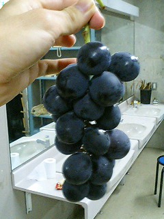 今日、大江が、実家から送ってきたブドウを持ってきて下さいました!ブドウ大好きな自分としてはめちゃめちゃ嬉しかったです!(^^)!汁をこぼしてしまいそうなので、楽屋の洗面所で地味にむしゃむしゃ食べてました!みんなの食べるペースも早かったので、一箱のブドウがあっという間になくなってしまって、音響担当の監督が、ブドウを食べ損なったそうで、申し訳ない!ブドウは一度食べ始めると止まらない、やめられない!…。 ごちそう様でした!