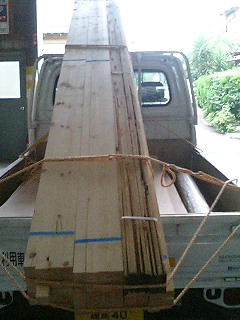 そして軽トラックを借り、目白の木材屋さんへ。初めてトラックというものを運転しました!初めは緊張したのですが、普通車よりもやや小ぶりなので運転しやすかったです!自分は車を運転するのが好きなので、初めて東京の街を走り、楽しかったです!(^^)! 道が全くわからないので、助手席で肇さんに丁寧に道を指示して頂き、木材屋さんに到着!ベニヤ70枚をはじめ、垂木などたくさんの木材を買いました。木材屋のおじさんが手慣れた手つきで木材を荷台に載せてくれ、器用にヒモで木材を荷台にくくりつけてくれました。その時の写真を添付します(^o^) 先輩が会計をしている間、自分は木材屋さんの社長さんと世間話。ここの木材屋さんにはあちこちの劇団が木材を買いにくるそうです。あと大映や日活の話しも聞いたり…。
